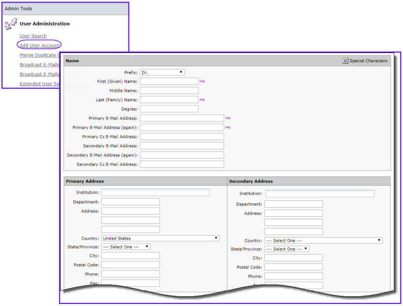 You should routinely check for duplicate user accounts. Duplicate accounts can prevent user from logging in, from getting their password when using the Password Help function, from locating a manuscript for review, and even from locating a manuscript that has received a decision. Thus, it benefits the journal to keep these duplicates to a minimum.