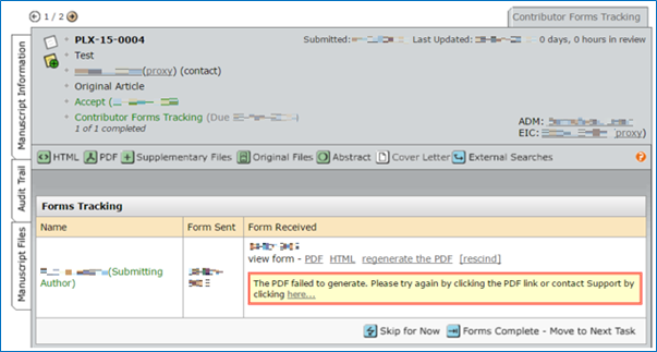 Once you have located the manuscript in Contributor Forms In, you may view the form as an HTML or PDF file.